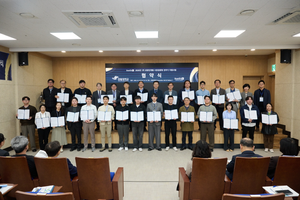최양희 한림대학교 총장은 2026년 4월 29일(수) 오후 교내 학생생활관 8관에서 열린 2026-1 Station C 성장단계별 시장검증형 전주기 지원사업 협약식 및 설명회 를